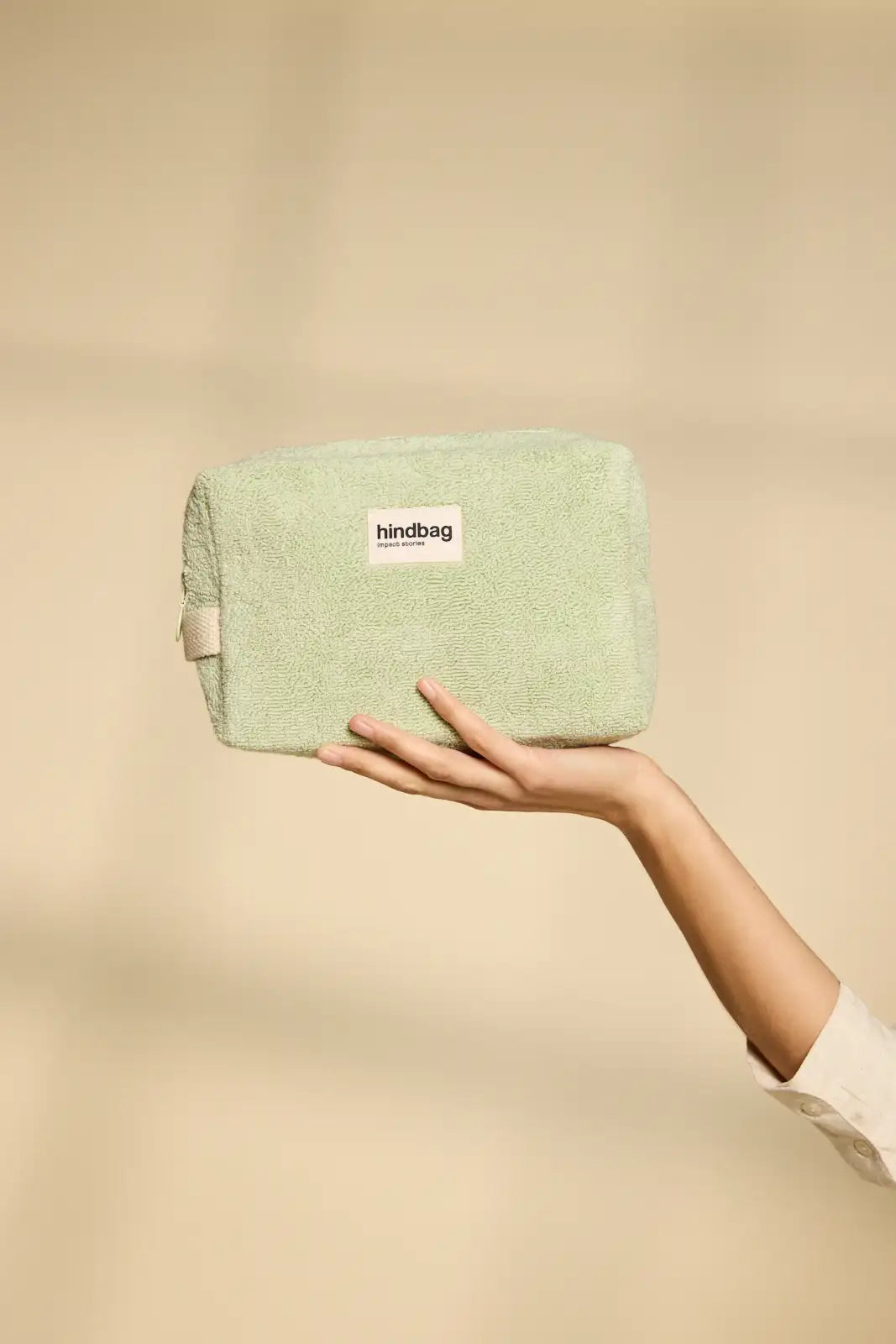 Leon, this is the Weekend toiletry bag for carrying your essentials. Sleek and vintage, it's easy to handle thanks to its handle. Each color has its matching organic cotton lining in blockprint pattern. In almond green, coral pink, or blue, let yourself be seduced by our organic cotton terrycloth bag. Comfortable and lightweight, the terrycloth collection will be perfect for your seaside getaways!