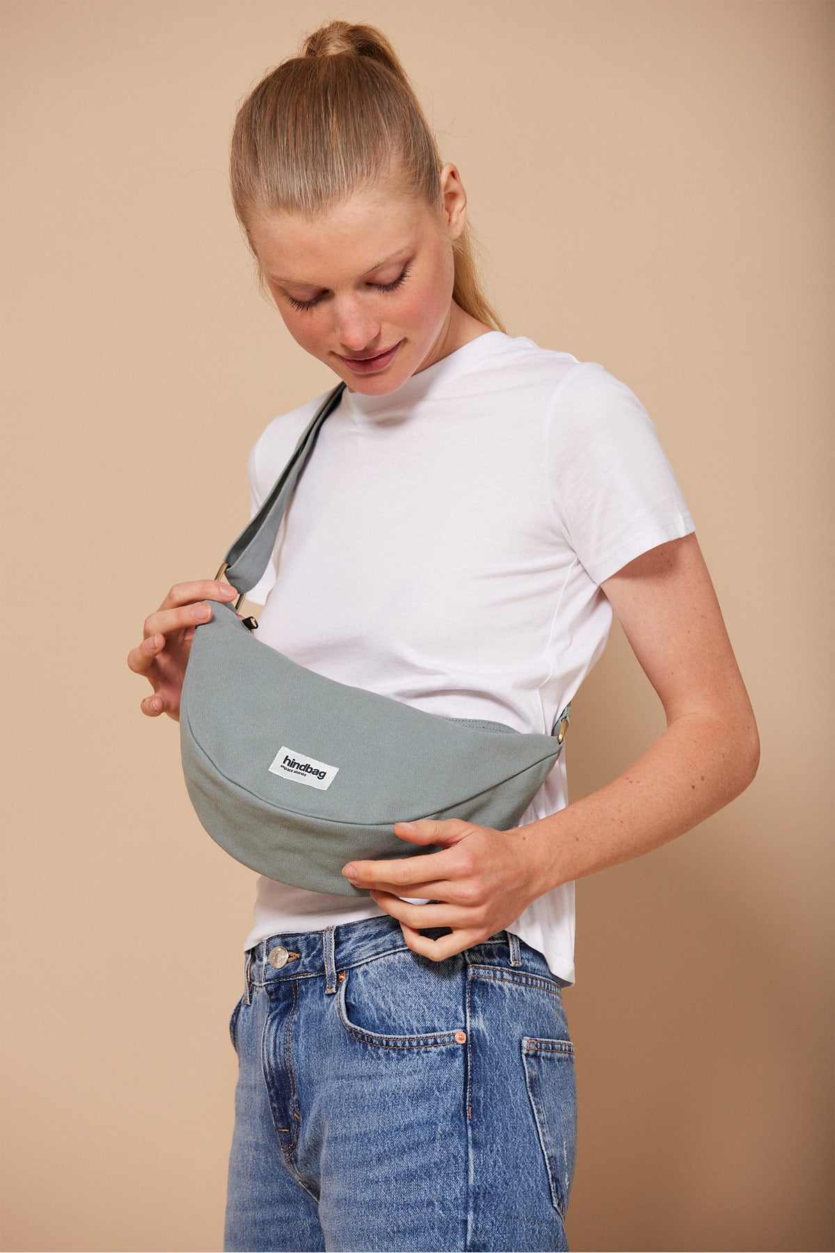 HALF-MOON BAG IN SAGE GREEN ORGANIC COTTON