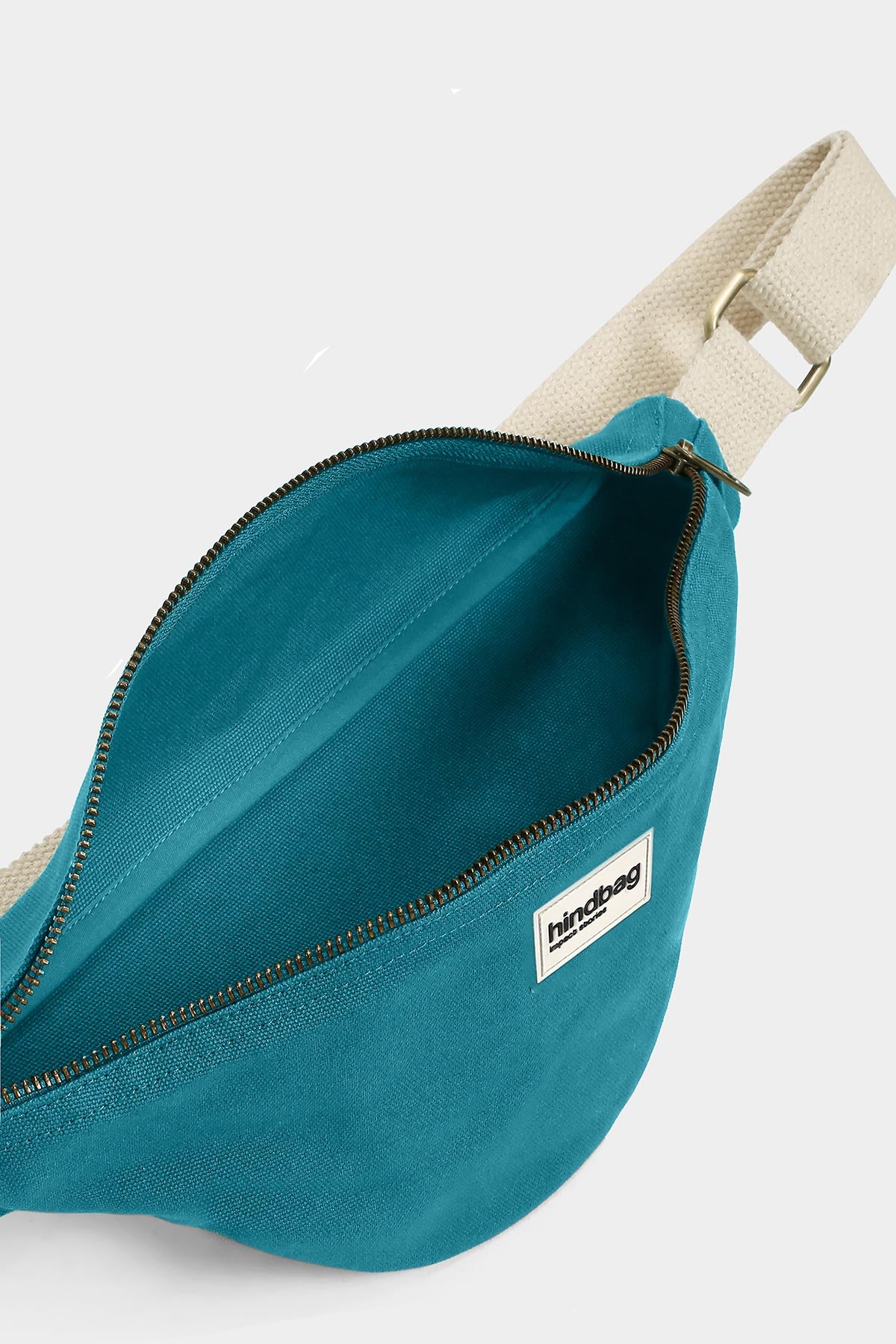 Olivia is the fanny pack that will quickly become indispensable! With its very thick and sturdy organic cotton , it carries your everyday essentials without losing its shape and is protected from light rain. Thanks to its adjustable handle, you can wear it over a thick coat in winter or over a light t-shirt in summer. Its super practical double zip closure will allow you to wear your bag across your left or right shoulder without your essentials falling out. upon opening. Fanny pack available in several colors. Choose our new Peacock Blue, a deep and vibrant shade that adds a bold and elegant touch.