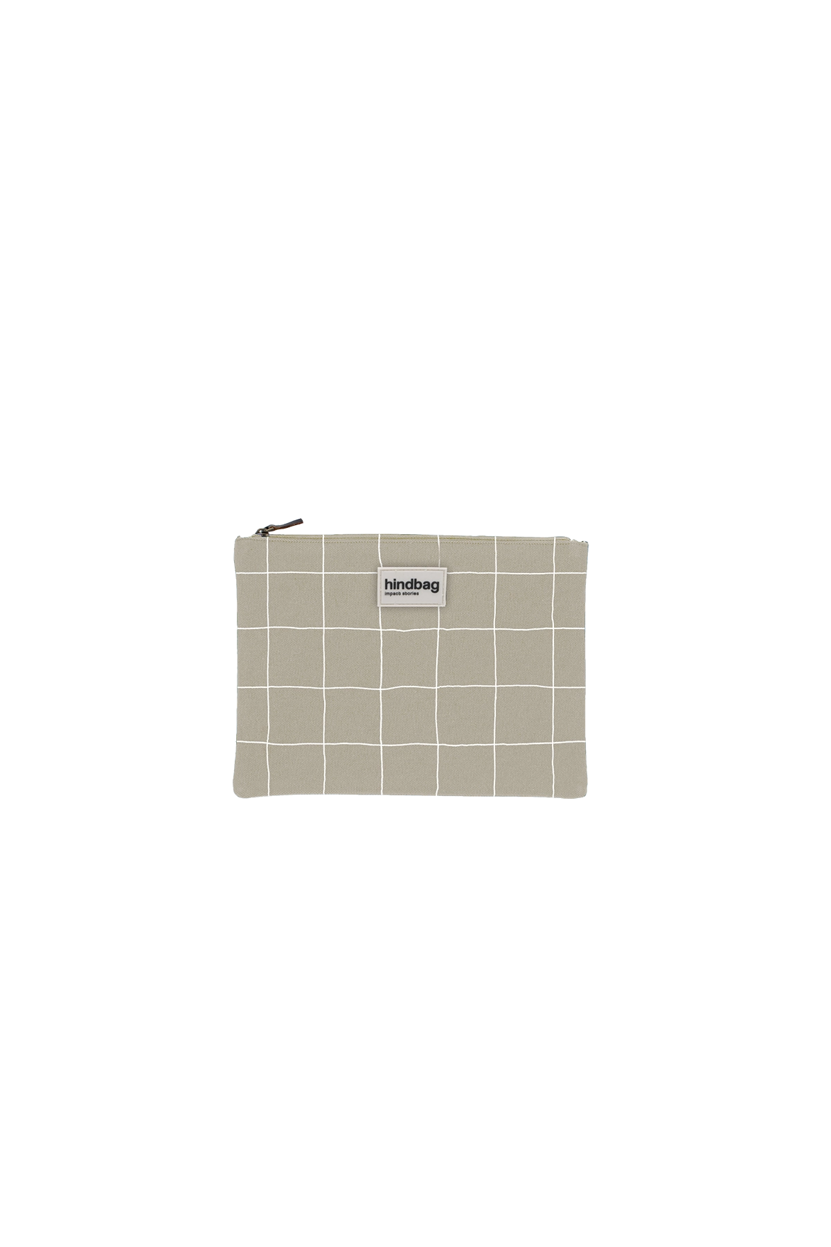 Organic cotton zip pouch in sage green and white check