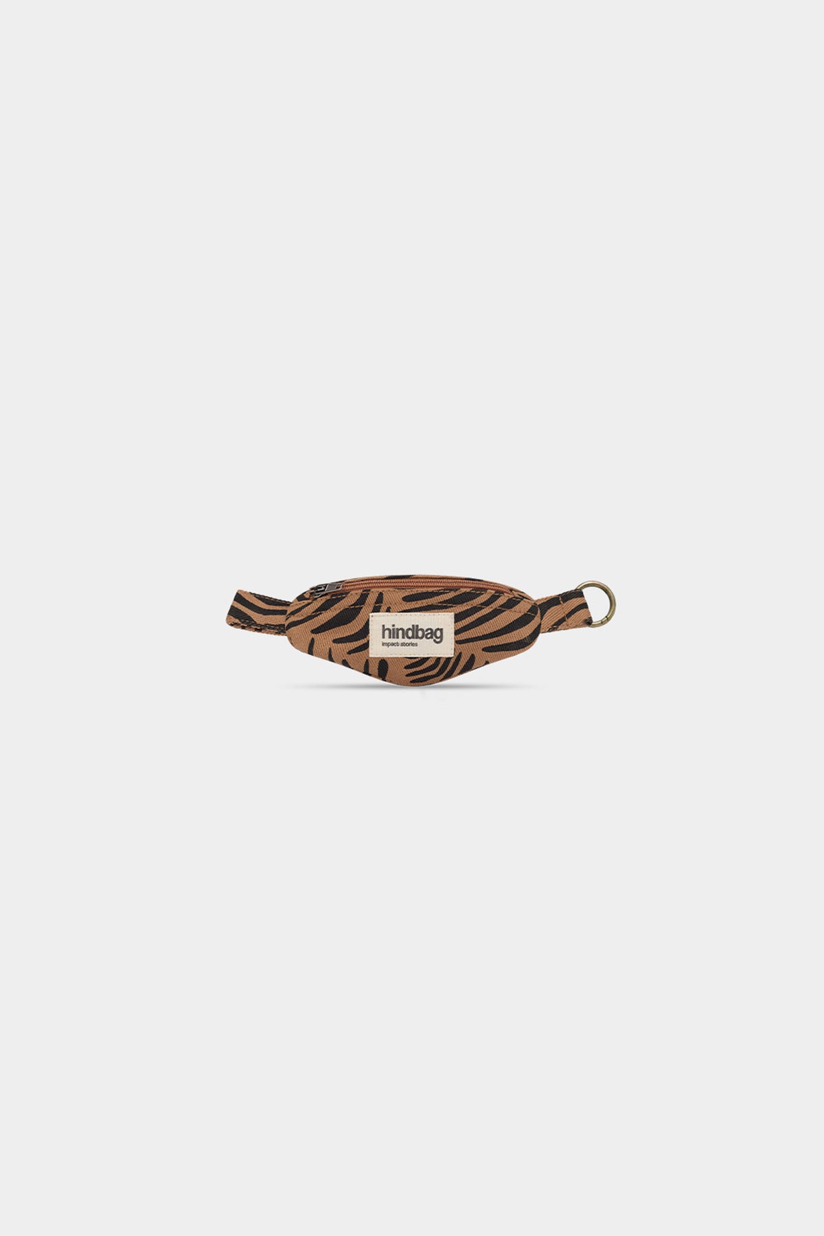 Fanny‑pack style keychain with zipper Cinnamon color with zebra prints