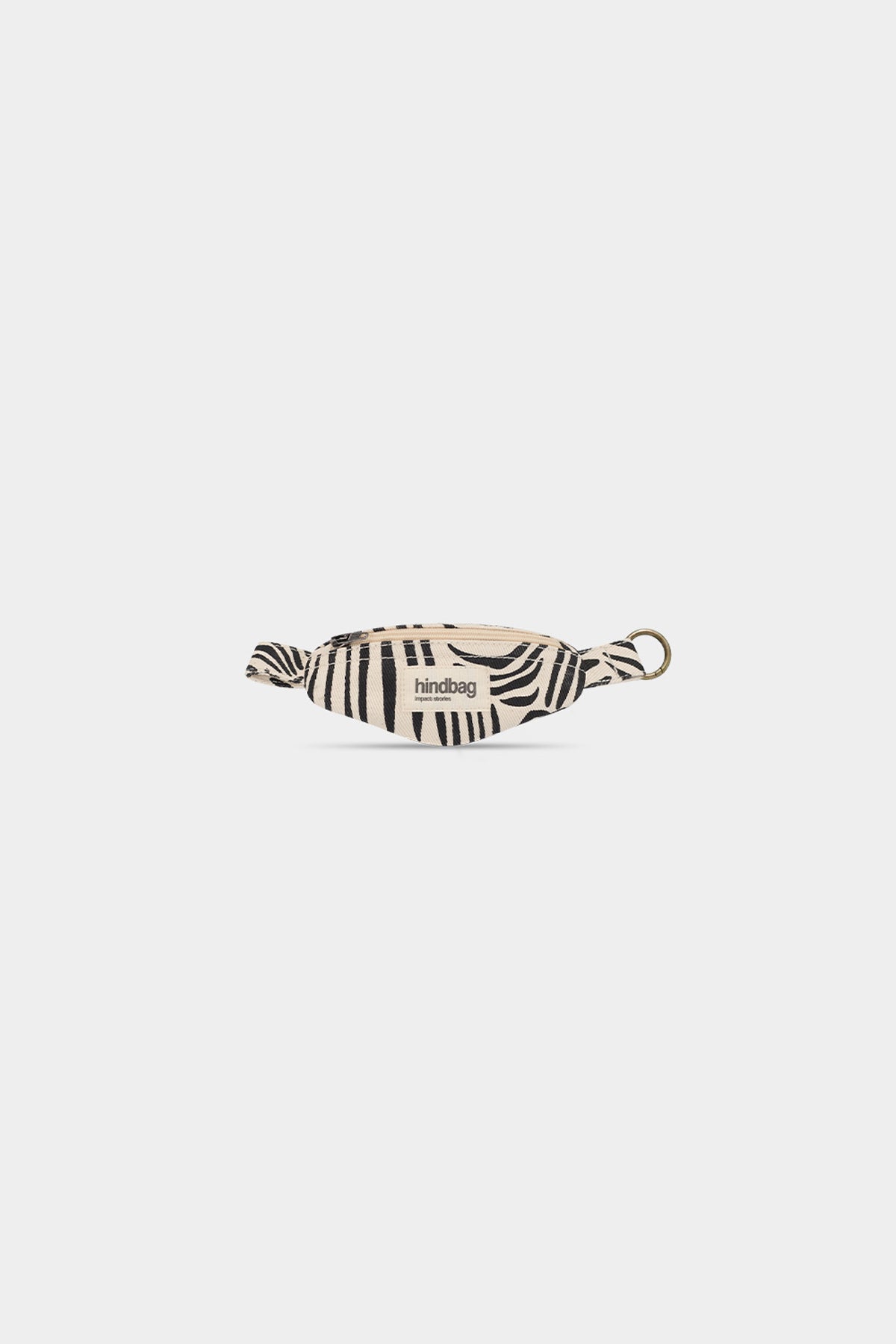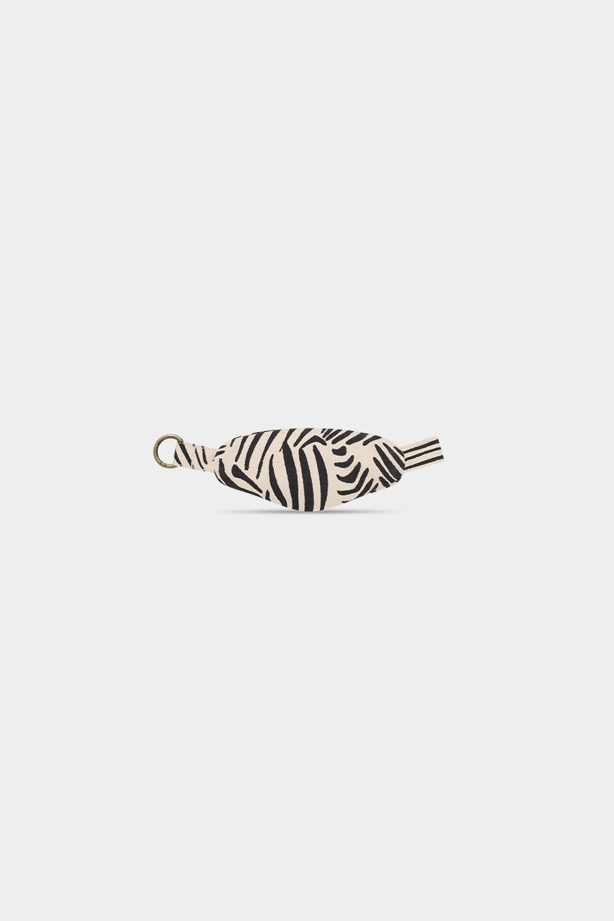 Fanny‑pack style keychain with Ecru color with zebra prints.