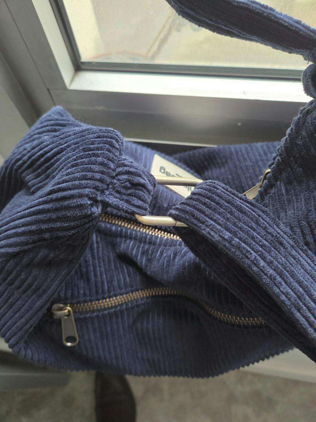 Large shoulder bag in navy organic corduroy