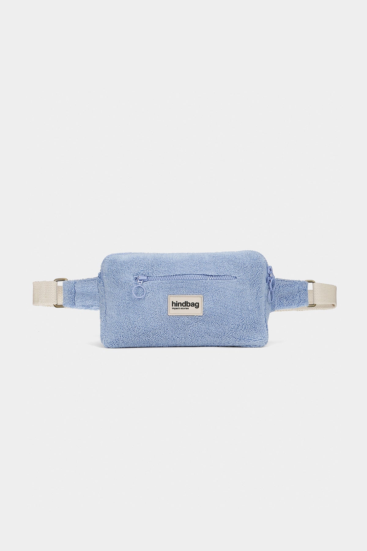Sac banane rectangulaire avec poches zippées avant et arrière, en éponge bleu nuage