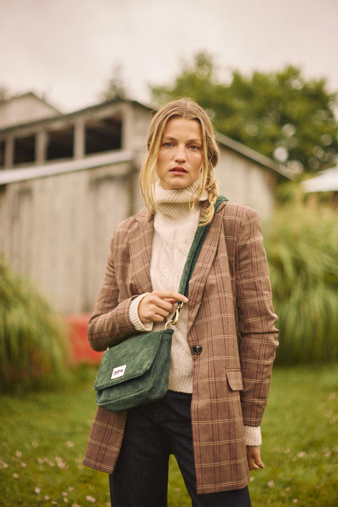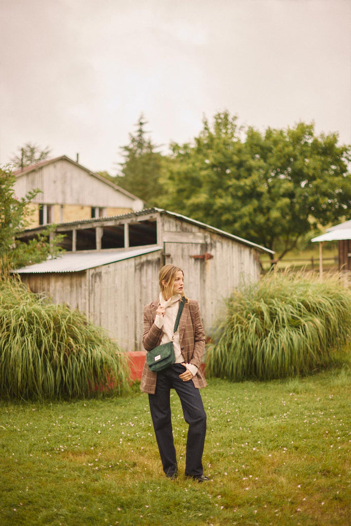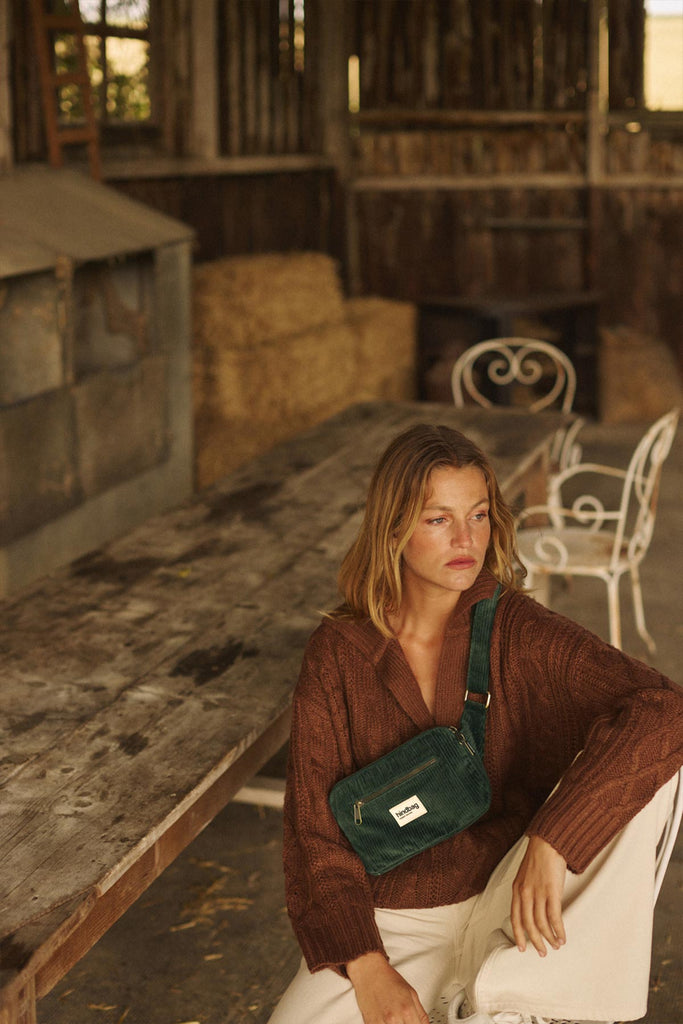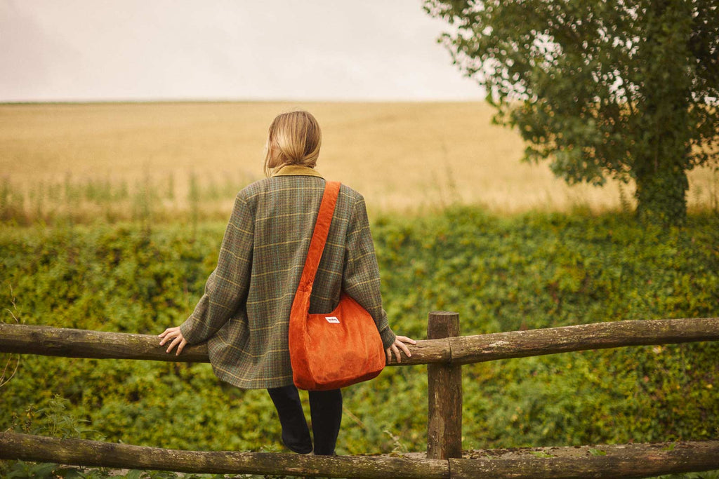 Sacs, pochettes et accessoires en velours bio certifié GOTS, déclinés en couleurs profondes pour un style chic, pratique et durable.