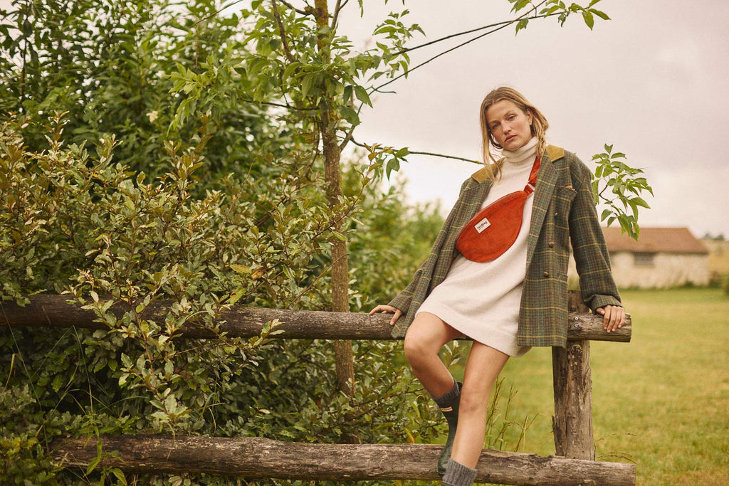 Entre champs dorés et ciel d'automne, le velours révèle une élégance douce et durable.