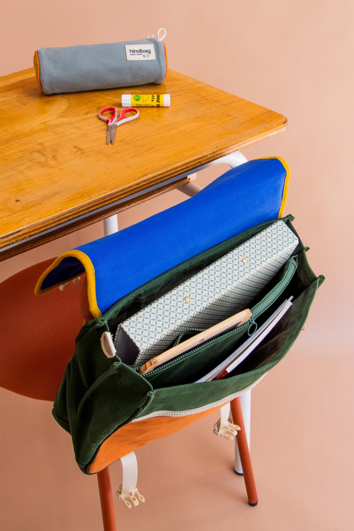 À l’intérieur, les 2 compartiments séparés par une poche zippée et la poche plaquée avant, permettent d’organiser le rangement des classeur et cahier A4, trousses et goûter. Grâce à son coton bio, ce cartable est léger, mais aussi résistant à la pluie, car le tissu est déperlant. Un anneau sur le côté permet d’accrocher en option l’accessoire Billy, une malicieuse pochette à trésors avec une face réfléchissante pour plus de sécurité.