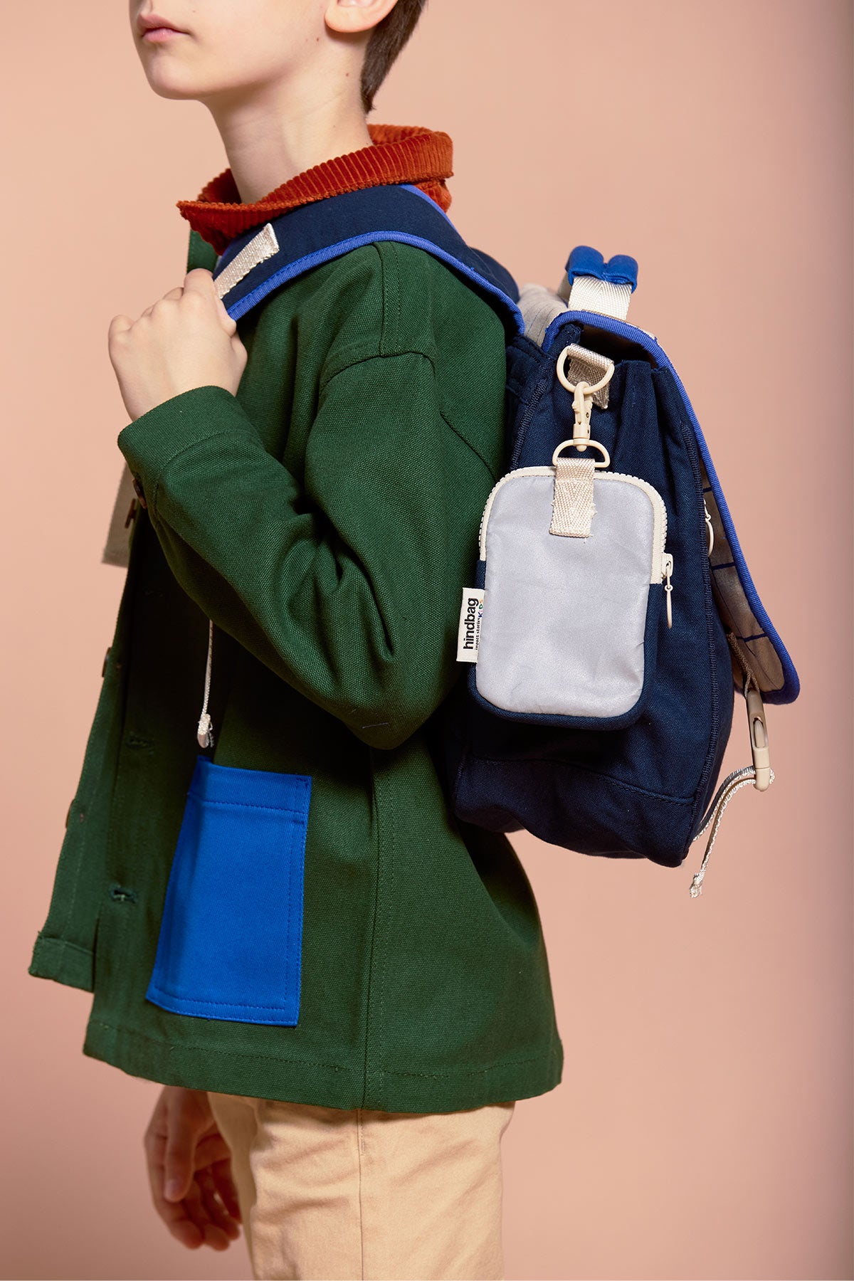 À l’intérieur, les 2 compartiments séparés par une poche zippée et la poche plaquée avant, permettent d’organiser le rangement des classeur et cahier A4, trousses et goûter. Grâce à son coton bio, ce cartable est léger, mais aussi résistant à la pluie, car le tissu est déperlant. Un anneau sur le côté permet d’accrocher en option l’accessoire Billy, une malicieuse pochette à trésors avec une face réfléchissante pour plus de sécurité.