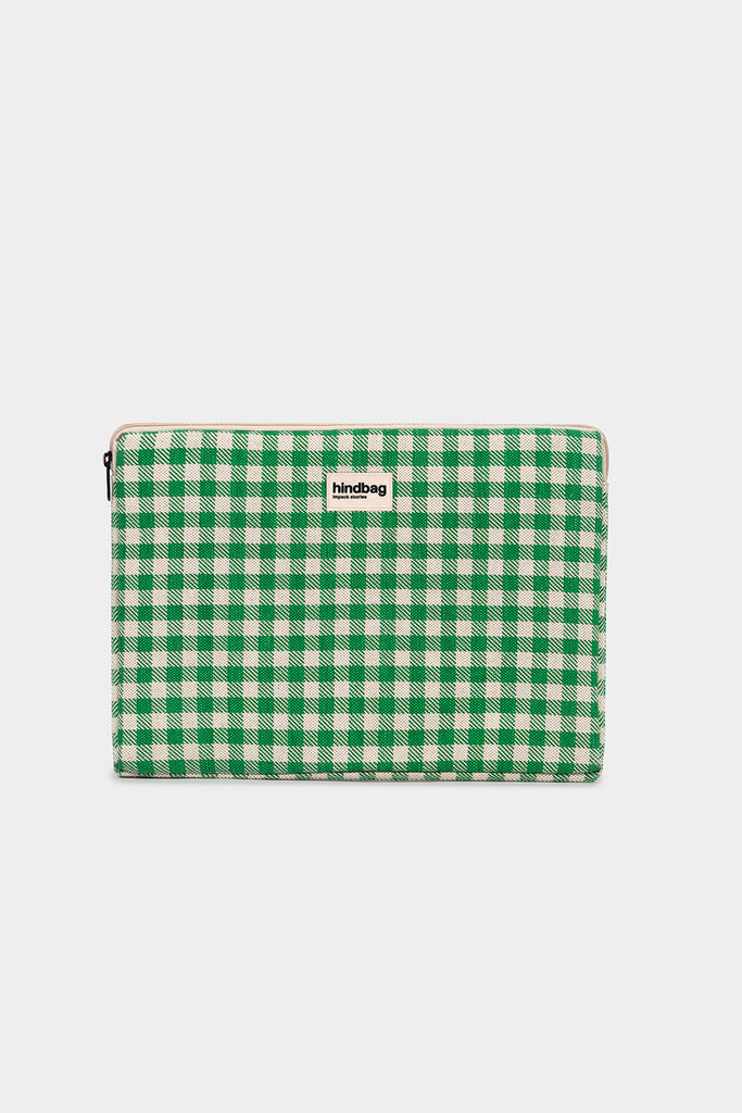 Ava, c’est la housse d'ordinateur super solide avec sa mousse anti-choc très épaisse pour transporter votre ordinateur en toute sécurité. La pochette avec fermeture éclair existe en 2 tailles différentes. Décliné en rose ou en vert, craquez pour le motif Vichy, la tendance française de cet été. Confectionné à partir d’un mélange de coton et de jute bio, il ajoutera une touche vintage à vos looks.