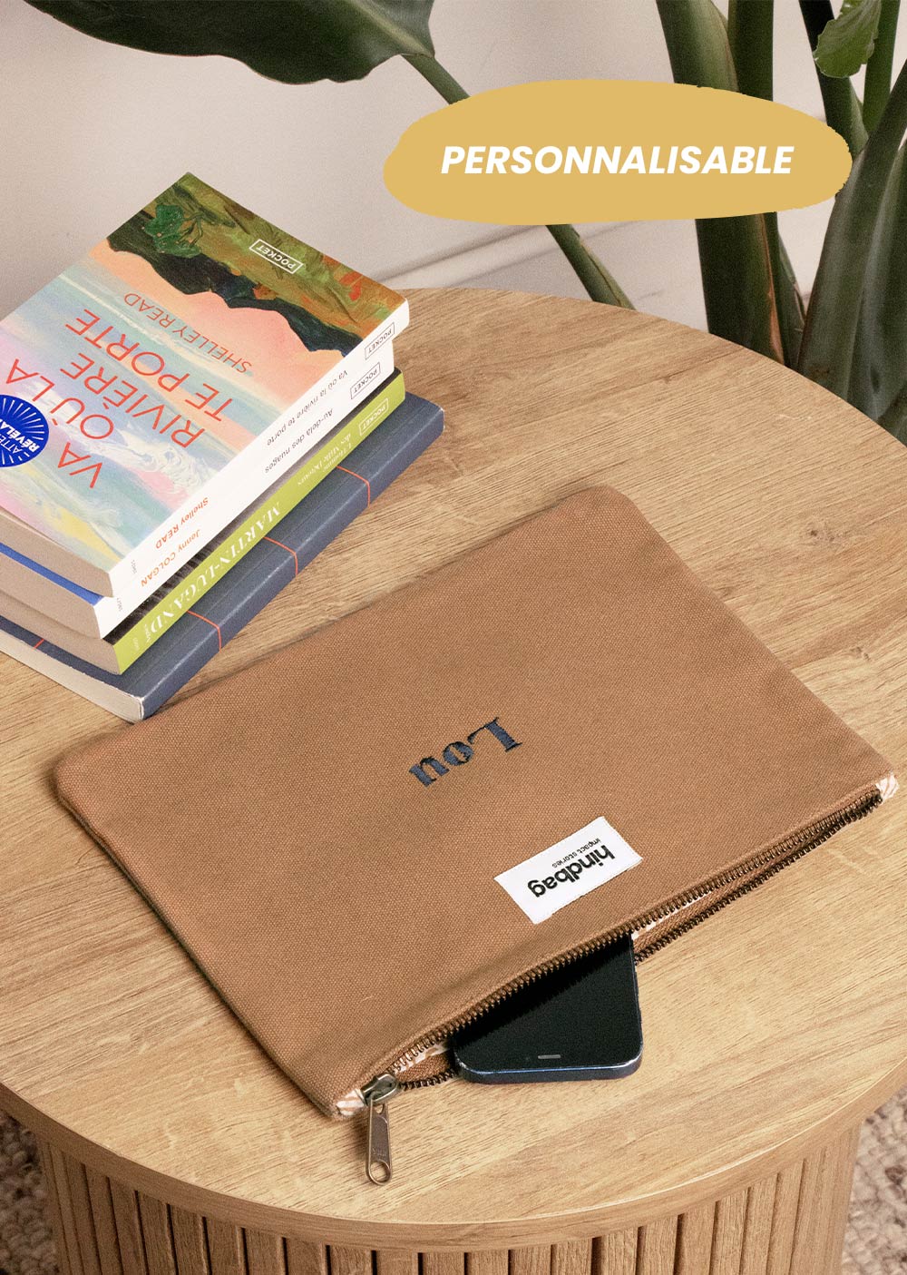 Trousse à fermeture éclair en coton bio de couleur cannelle