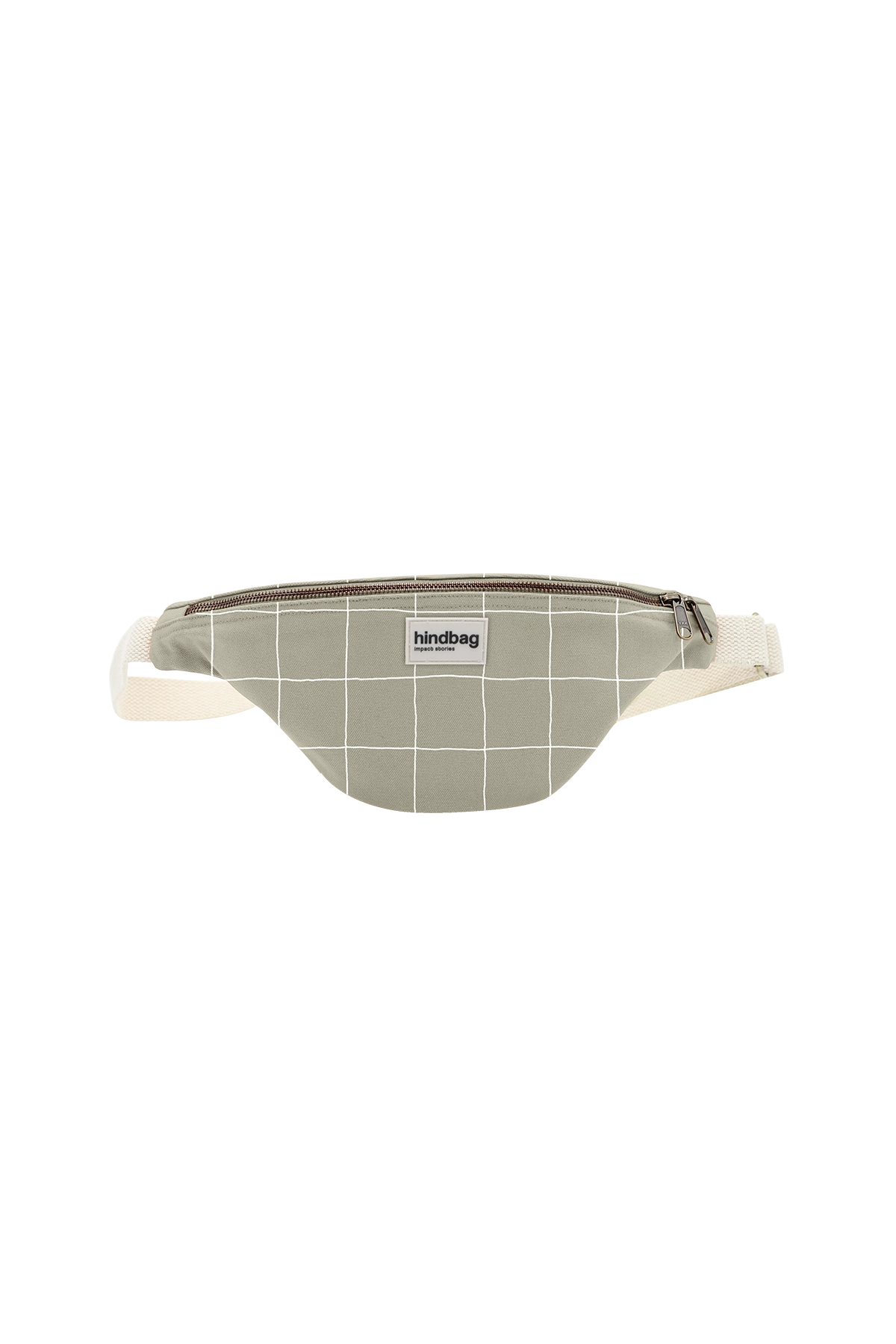 Sac banane en coton bio en carreaux vert argile/ blanc