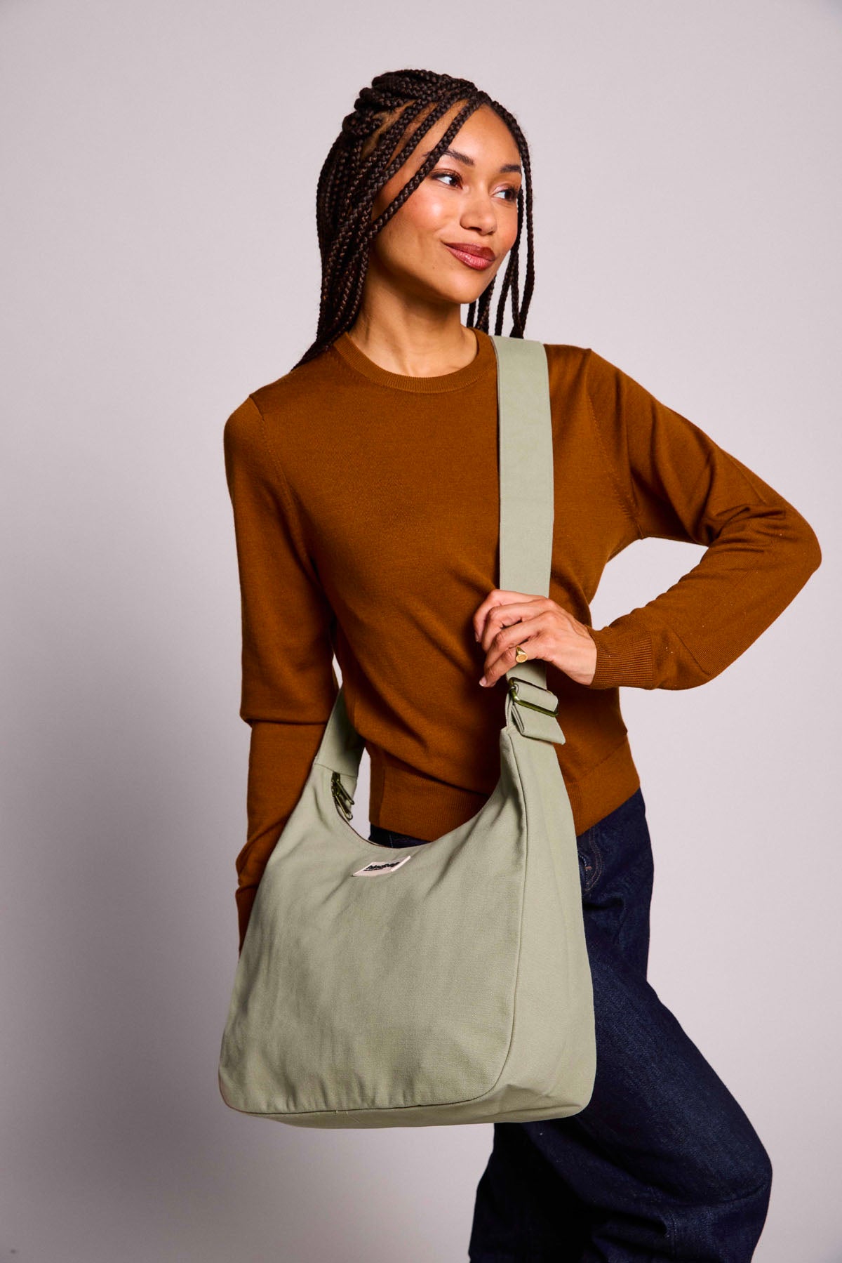 Le sac hobo en coton bio de couleur Vert argile