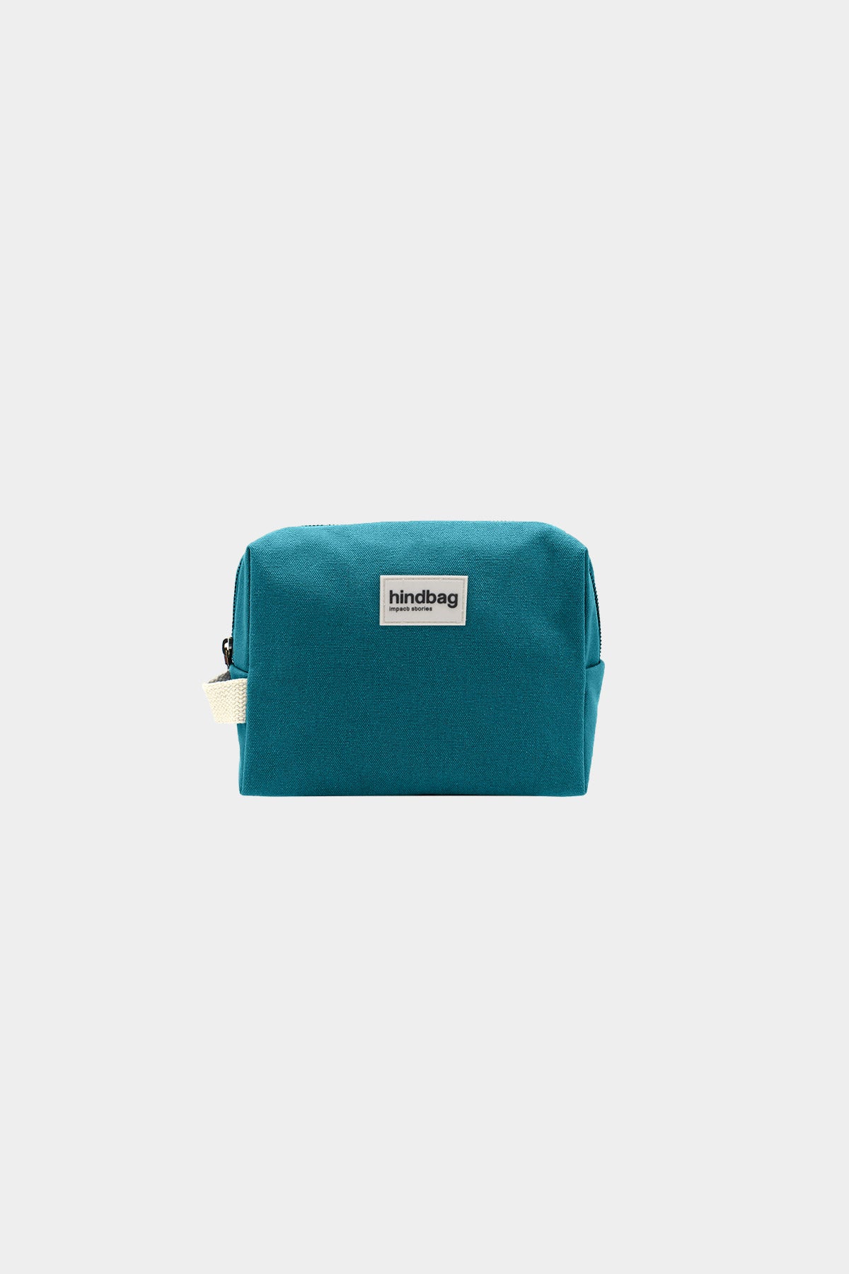 Trousse avec fermeture éclair en coton bio de couleur Bleu paon