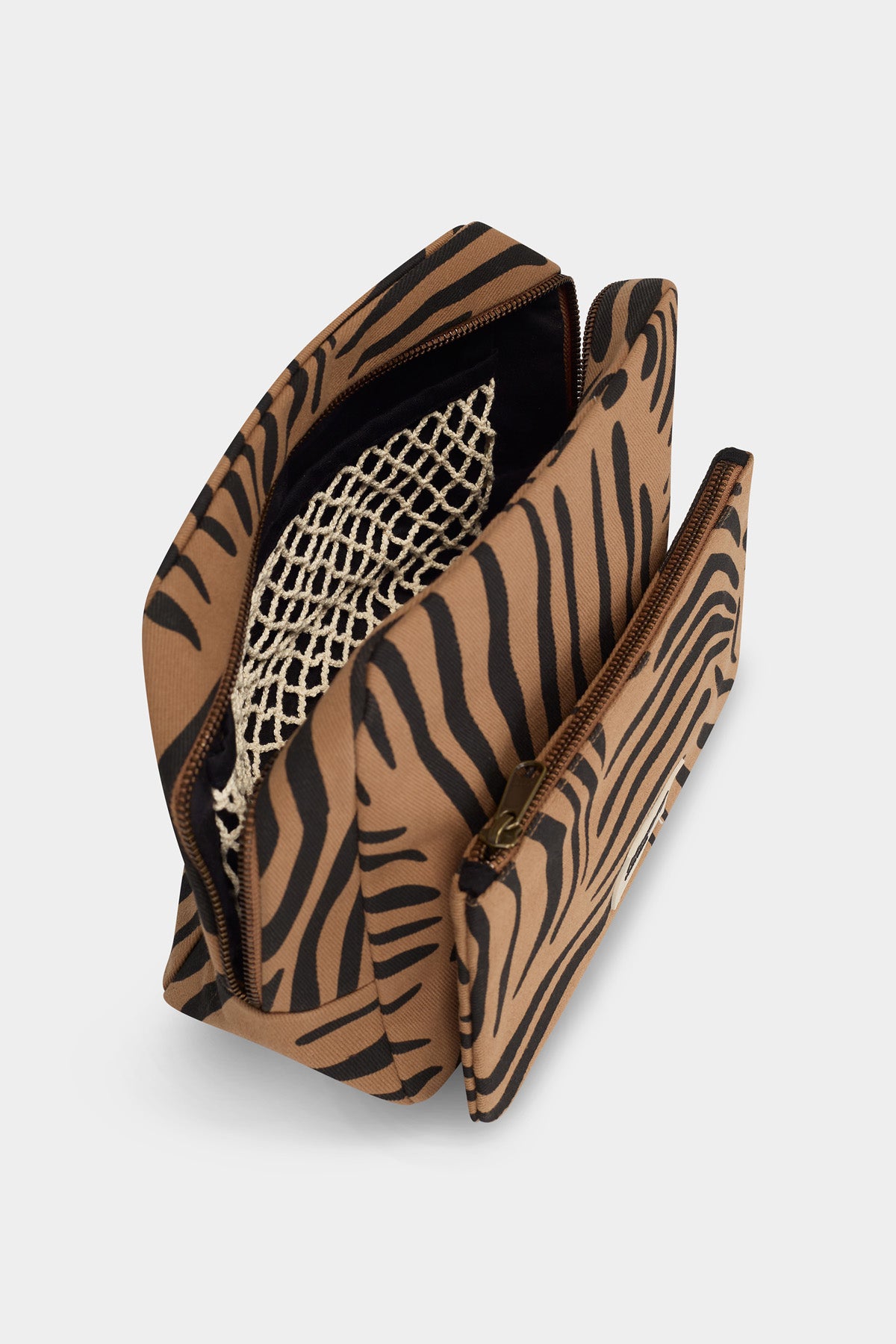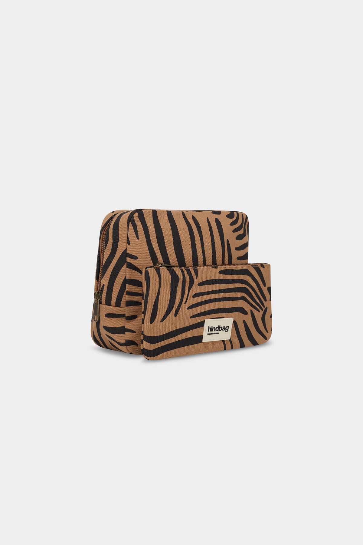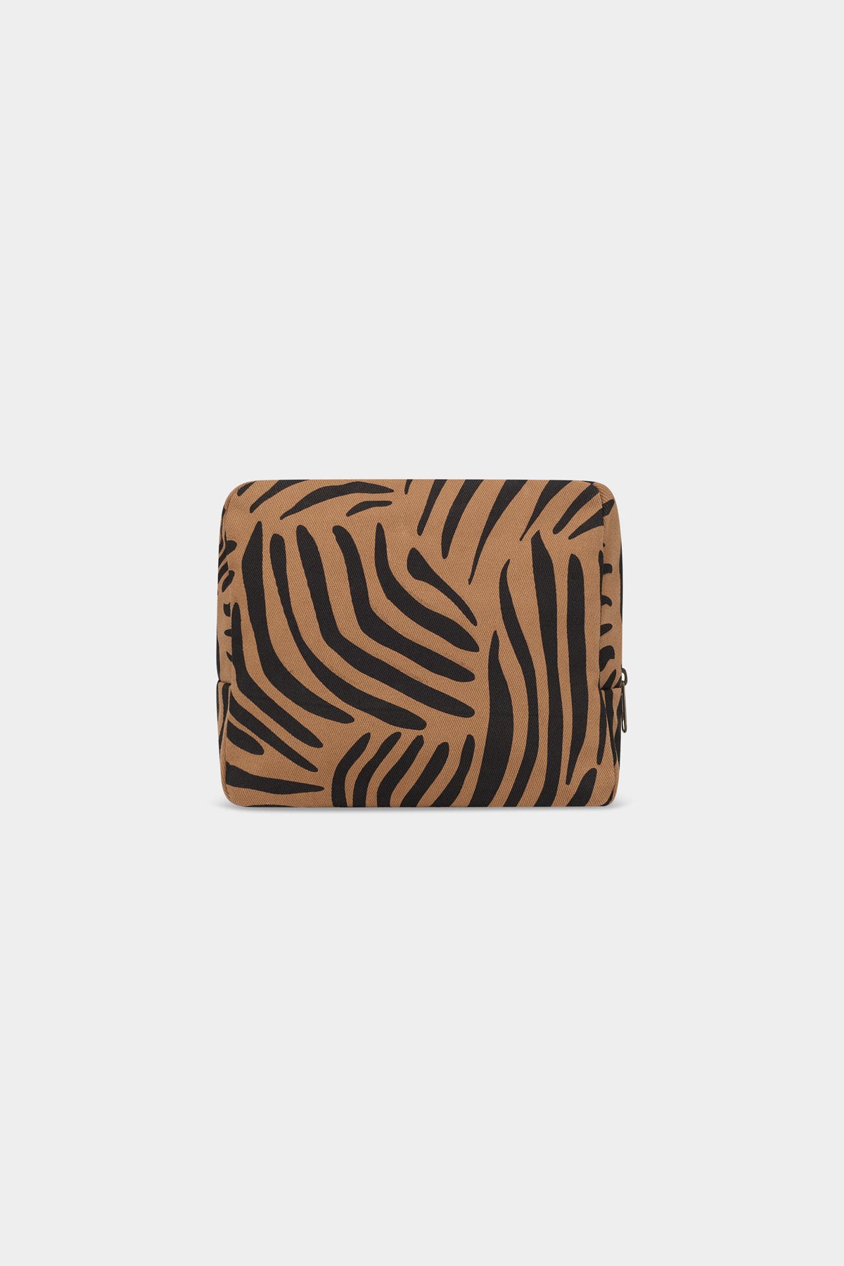 Trousse de toilette en coton bio de couleur cannelle imprimés zébrés