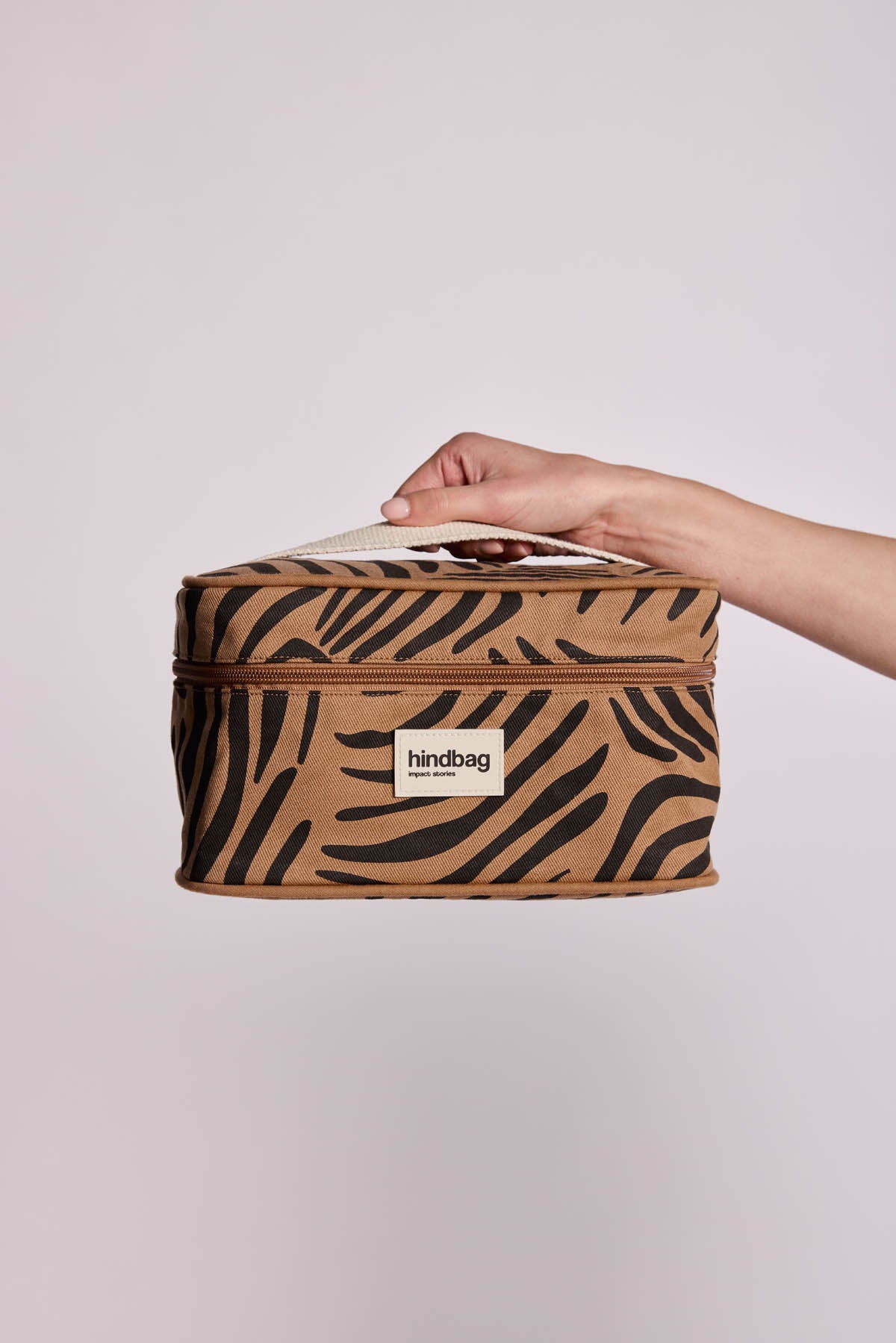 Gaspard, c’est le vanity pour emporter tous ses produits favoris en vacances. En plus d’être élégant et coloré, il est pratique. En effet, son anse extérieure permet de le transporter facilement et son filet intérieur maintient tous les petits produits. Pour cette saison, l’imprimé Zèbre cannelle s’exprime à travers un motif sauvage aux tons chauds, plein de caractère et d’énergie.