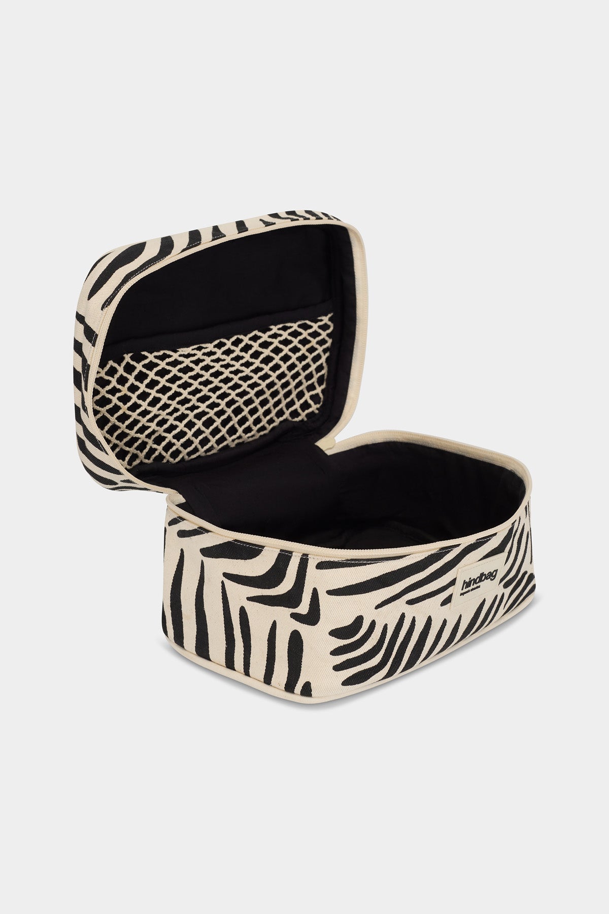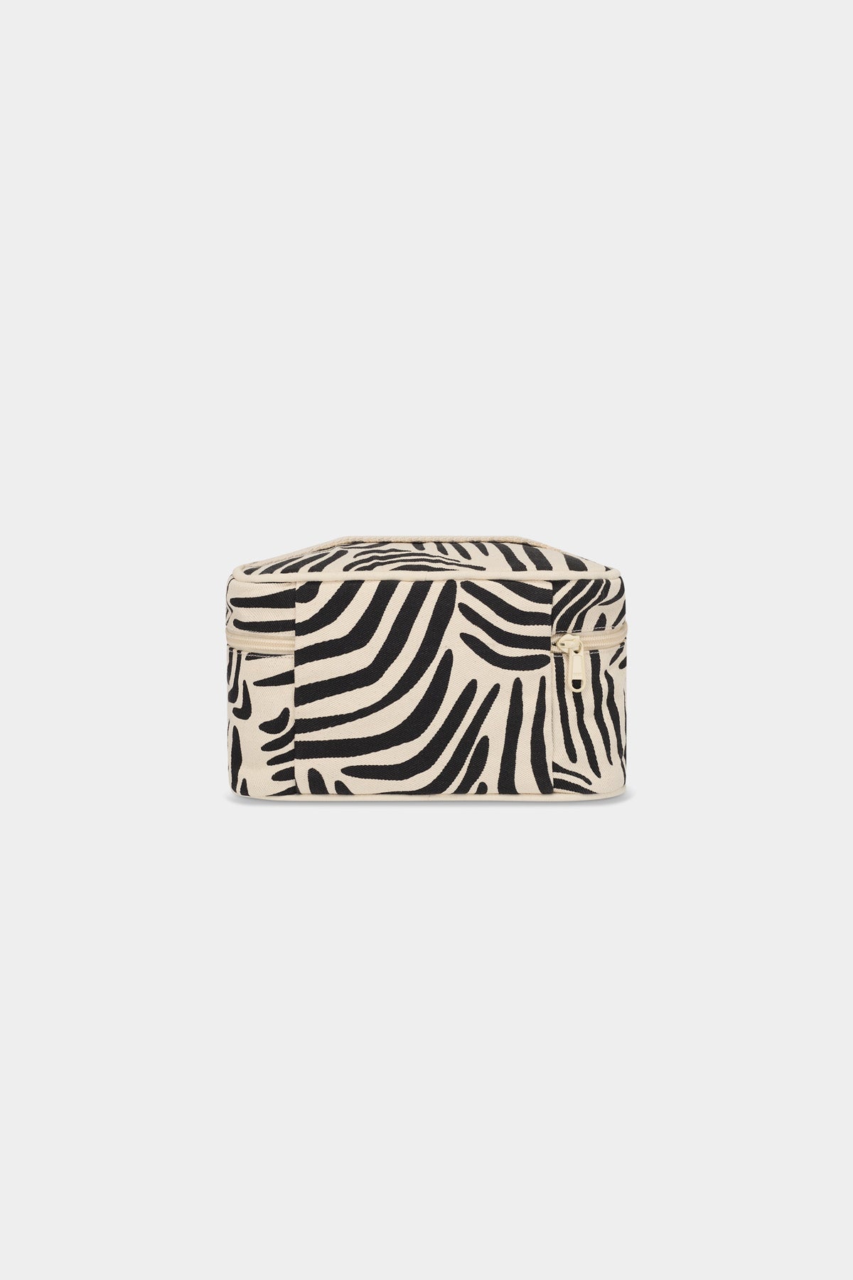 Gaspard, c’est le vanity pour emporter tous ses produits favoris en vacances. En plus d’être élégant et coloré, il est pratique. En effet, son anse extérieure permet de le transporter facilement et son filet intérieur maintient tous les petits produits. Pour cette saison, l’imprimé Zèbre écru dévoile un motif sauvage et lumineux, entre élégance naturelle et esprit affirmé.